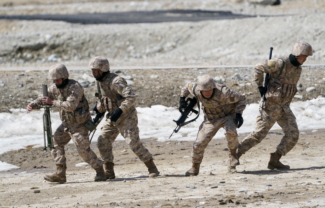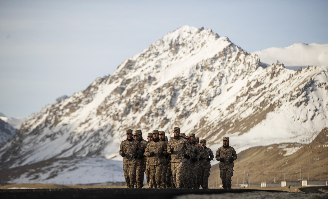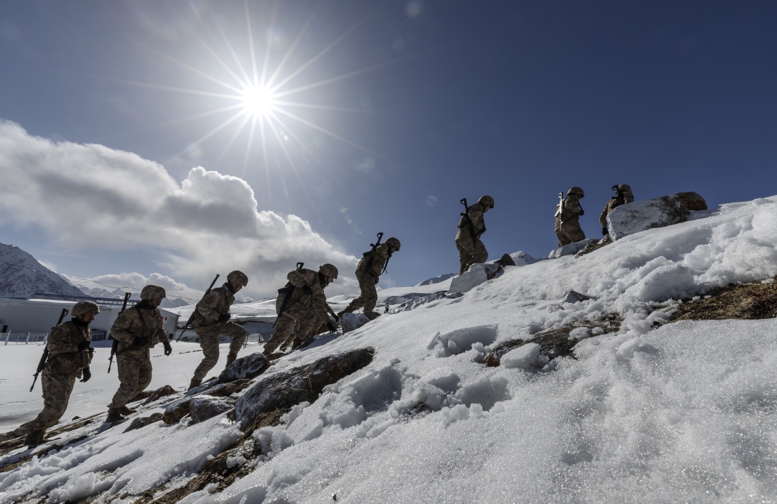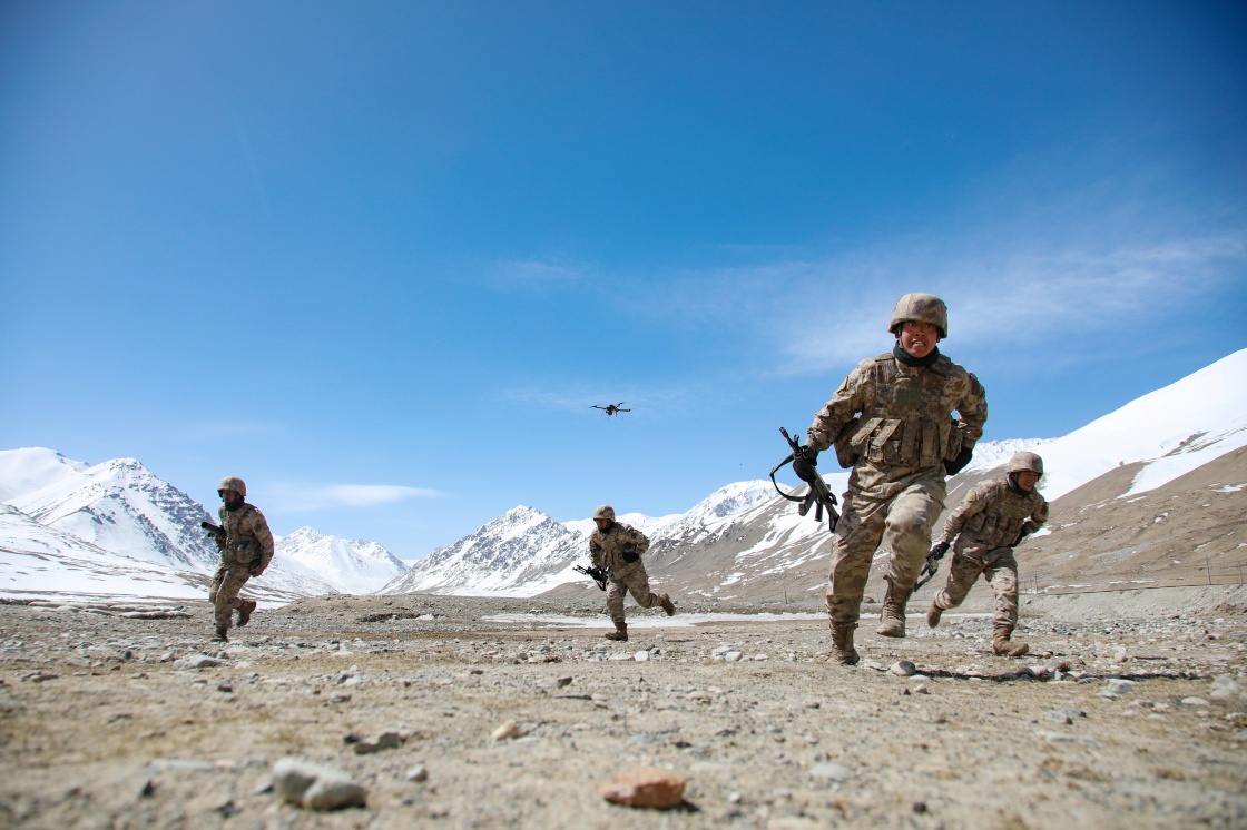 4月13日,边防连官兵在进行训练。新华社发(姬文志 摄)