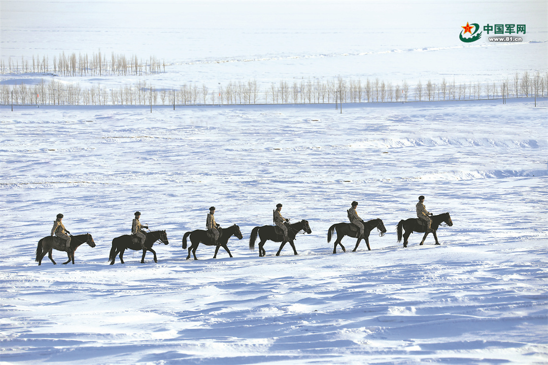 新疆军区某边防连官兵骑马巡逻。 黄金奇 摄