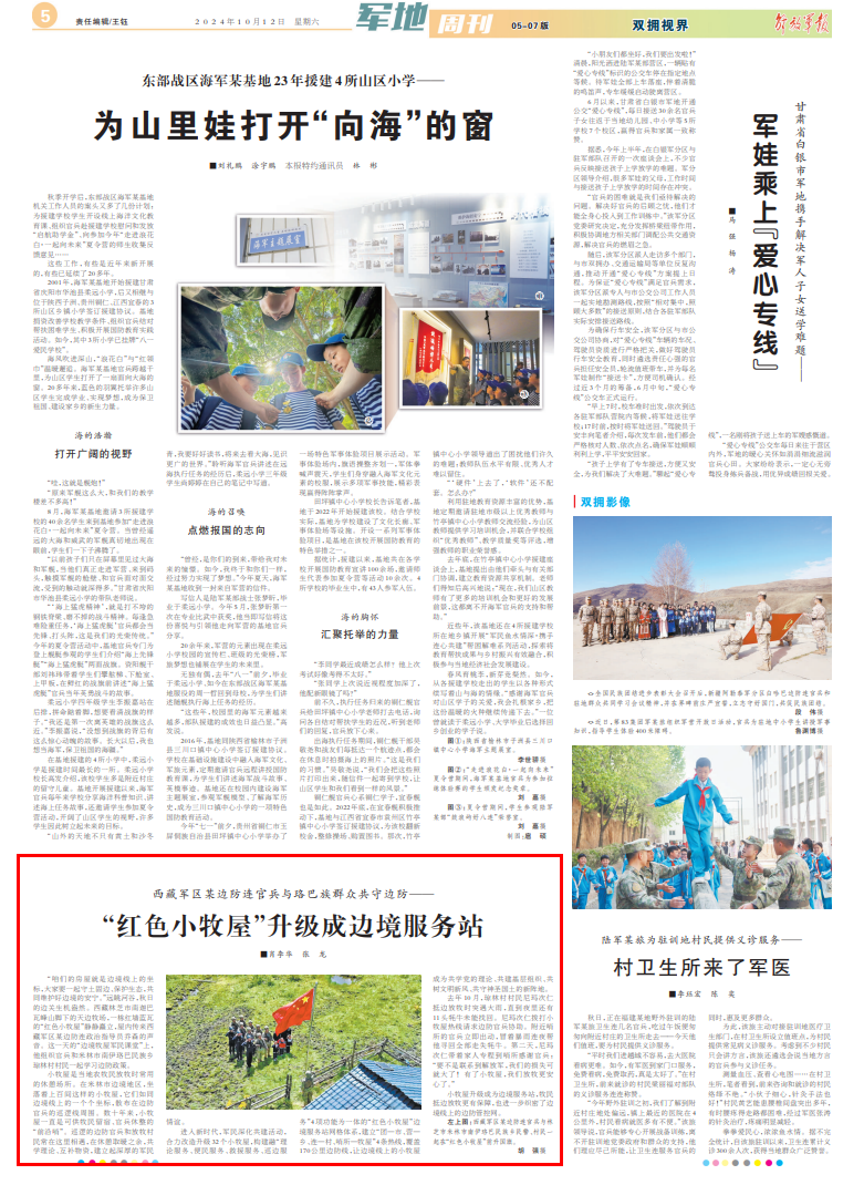 “咱们的房屋就是边境线上的坐标,大家要一起守土固边、保护生态,共同维护好边境的安宁。”远眺河谷,秋日的边关生机盎然。西藏林芝市南迦巴瓦峰山脚下的天边牧场,一栋红墙蓝瓦的“红色小牧屋”静静矗立,屋内传来西藏军区某边防连政治指导员乔森的声音。这一天的“边境牧屋军民课堂”上,他组织官兵和米林市南伊珞巴民族乡琼林村村民一起学习边防政策。
