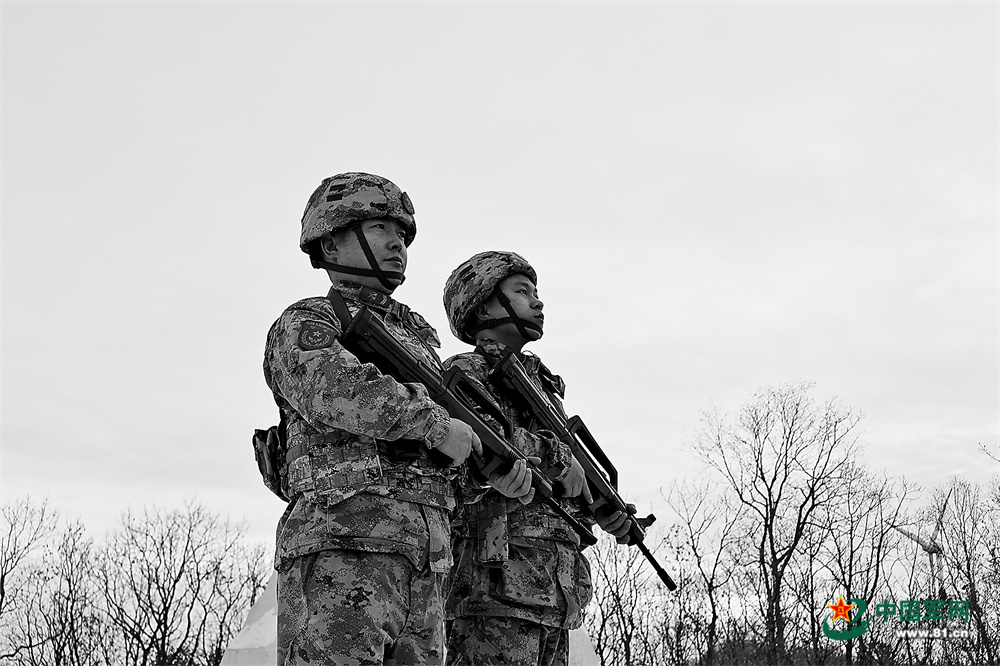 官兵在阵地执勤。