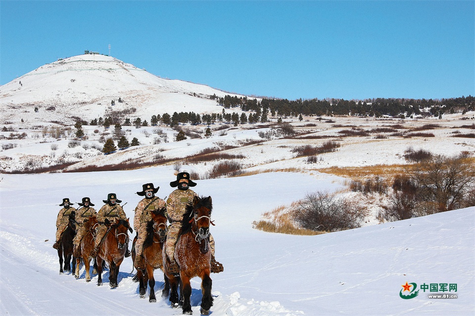北部战区陆军某边防旅官兵骑马巡逻。李朋儒 摄