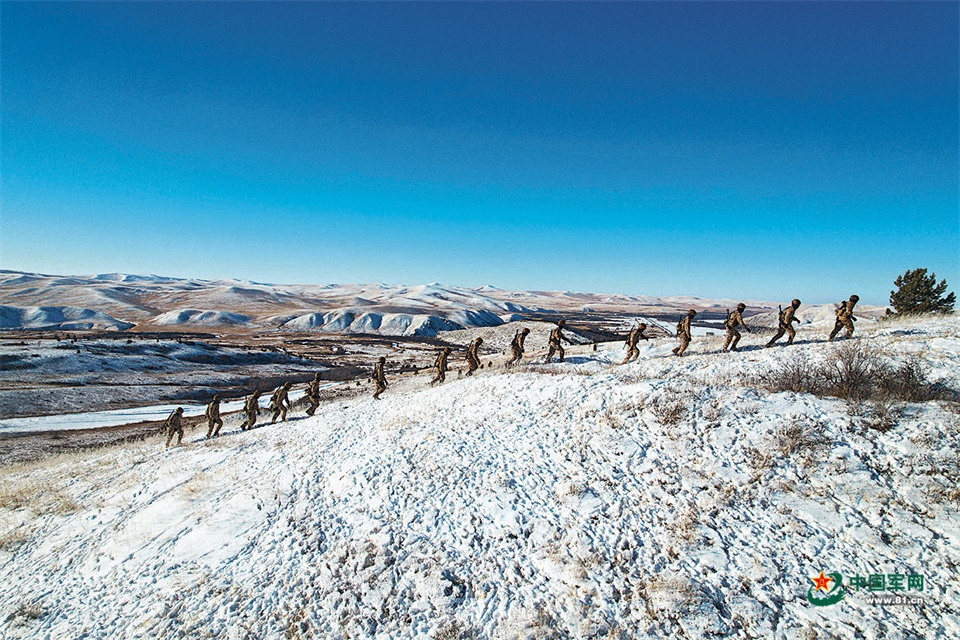 比武那几天,平均气温低于零下20℃,锋利的冷风最高达到8级,整个大地跟冰窖一样。伴着风雪展开的第一个课目是5公里武装越野,大家冒着严寒奔跑在北疆的草原上。