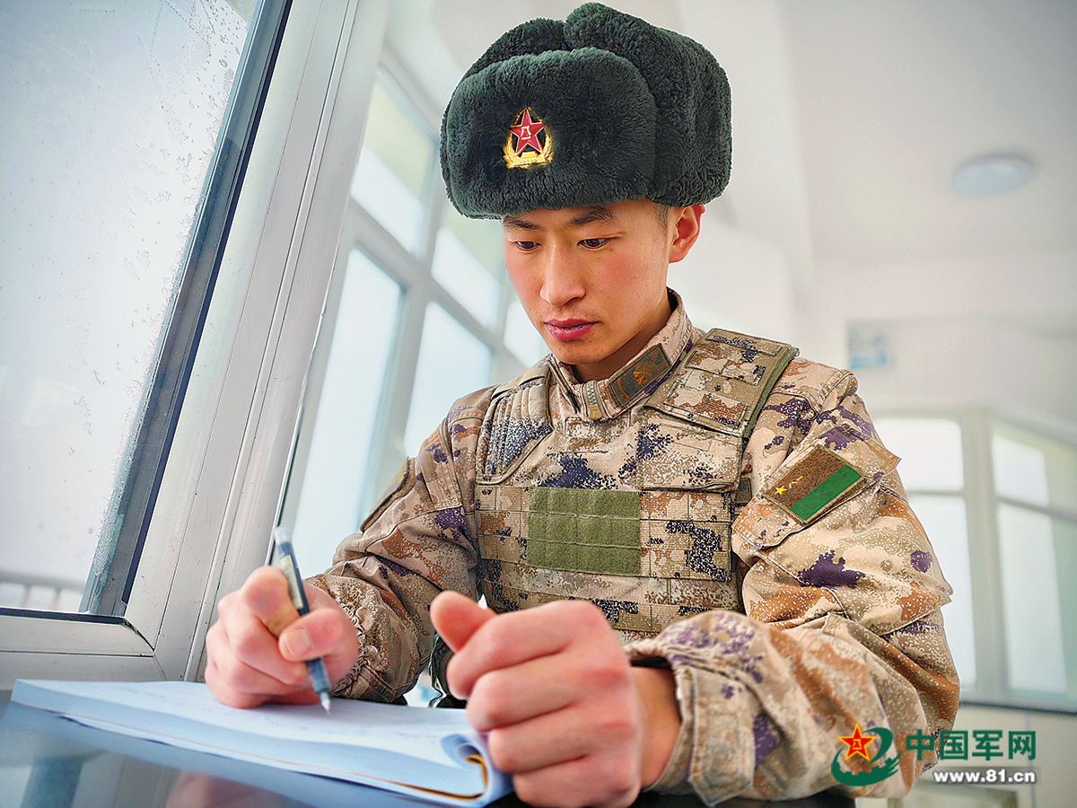 更多安心的时刻,被悄悄写进官兵的日记本:孙晓宇画下哨长仰望星空的侧影,刘新认真抄写哨长推荐的边塞诗。战士们说,每一种温暖,都让他们安下一颗心,扎下守哨的根。