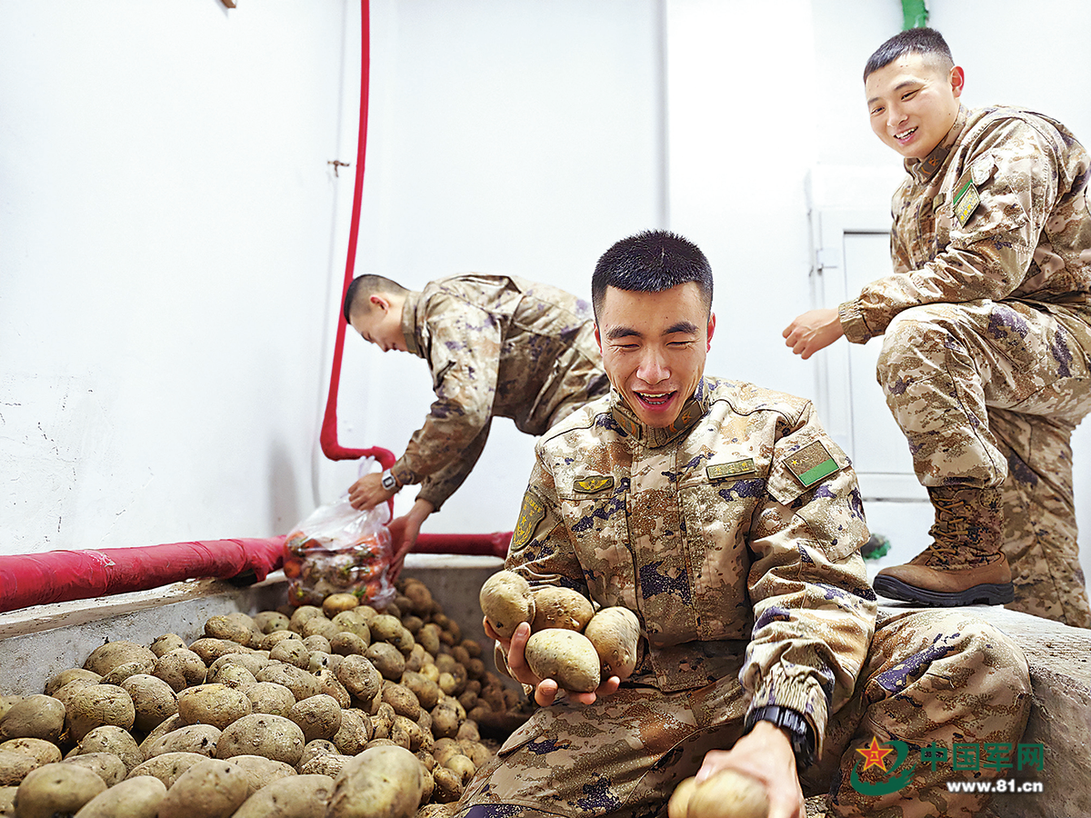 储物间里,土豆、白菜码得齐整。入冬前,苏新辉特意让连队多补给了一批冬菜——那年暴雪封路,连队成了“孤岛”,全连靠着土豆、白菜撑到路通。如今在哨点过冬,囤足冬菜,是他心头一件大事。
