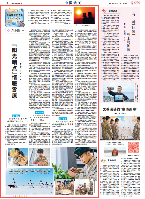 雪海坚守,心中亦有憧憬。刘新在电话里对连长说:“盼望新的一年,哨点能建起一座阳光房。待下个冬天,大家就能在里面看书、种菜,让哨点更有家的感觉。”