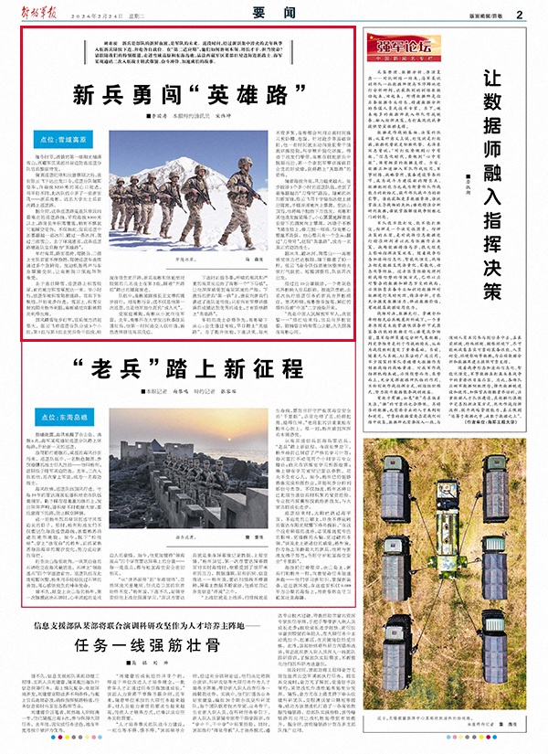 编者按 新兵是部队的新鲜血液,是军队的未来。近段时间,经过新训集中淬火的去年秋季入伍新兵陆续下连、奔赴各自战位。在“第二适应期”,他们如何磨砺本领、增长才干、担当使命?请跟随我们的特别报道,走进雪域高原和东海岛礁,品读西藏军区某部日屋边防连新战士、海军某观通站二次入伍战士精武强能、奋斗冲锋、加速成长的故事。