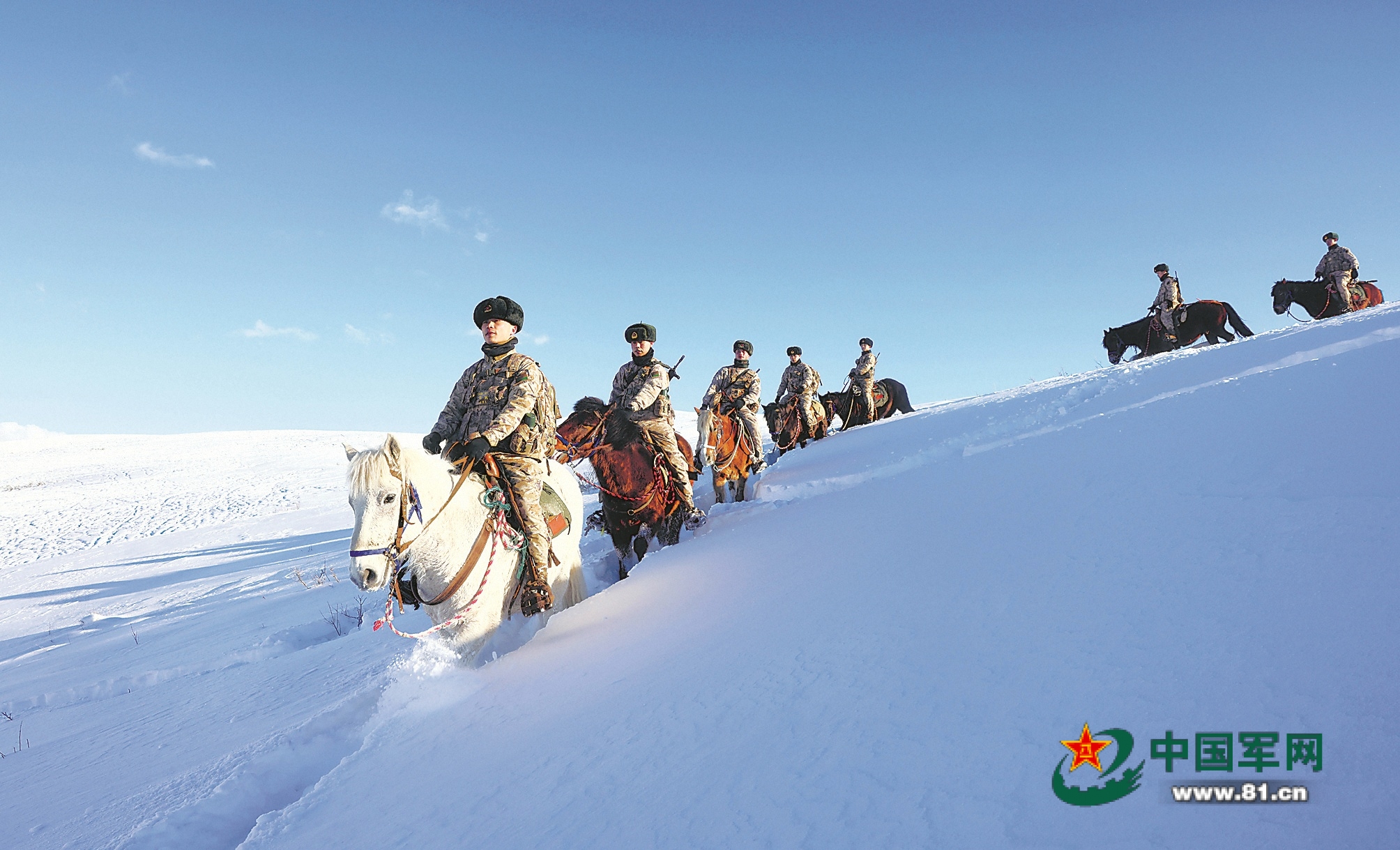 2月中旬,新疆军区扎玛纳什边防连官兵执行边防巡逻任务。段伟 摄