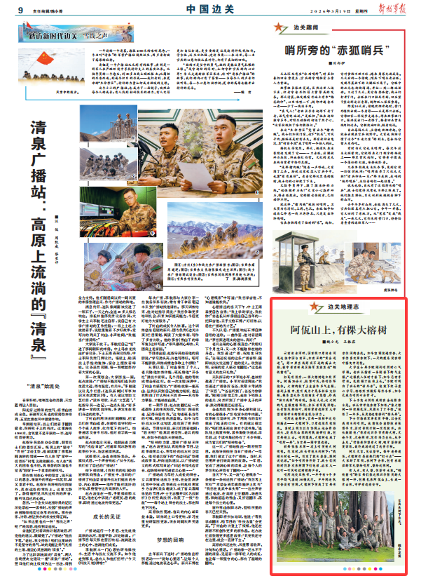 新兵张佳乐第一次上哨便被大树吸引。想家时,班长带他来到树下:“我刚来时也一样。想家了就来坐坐,跟树说说话。”如今哨所条件好了,战士们闲暇时仍喜欢在树荫下打电话,让家人一起听一听风吹过树梢的声音。