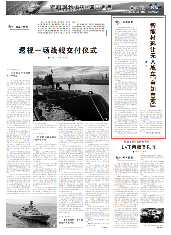 目前全球无人装备市场的持续升温,无人化、智能化已成为不可逆转的趋势。可以预见,随着技术成熟,智能材料将不仅有效提升单台战车的生存力战斗力,还将对未来战争形态产生重大影响。