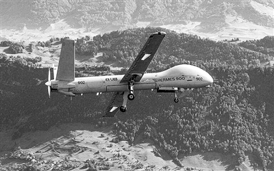 黄巍介绍,“赫尔墨斯”-900长8.3米,宽15米,空机重830千克,最大起飞重量1180千克,最大速度约220千米/小时,巡航速度约130千米/小时,实用升限9145米,最大航程超过4500千米。它的优势在于使用了先进的传感器、照相机等设备,并且它的最大续航时间可达到36小时。“赫尔墨斯”-900通过一个两人的地面控制站来运行,并且可以与现有的“赫尔墨斯”-450的地面控制站相匹配。