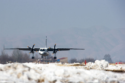 战机从清理完毕积雪的跑道起飞