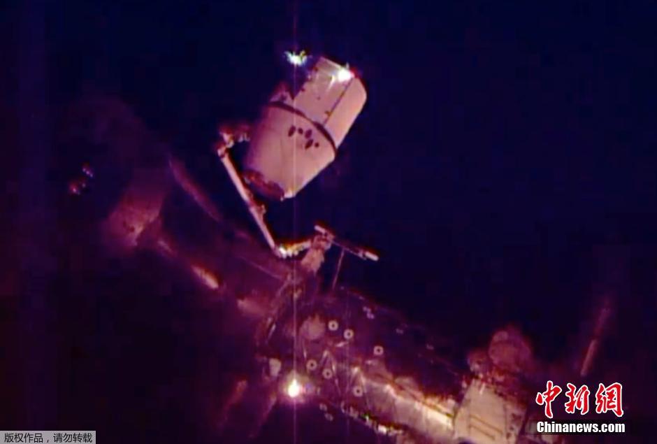 当地时间2014年4月20日,美国航天局发布消息说,经过近两天的飞行,美太空探索技术公司的“龙”飞船当天将货物送抵国际空间站。美国航天局在一份声明中说,国际空间站内的日本宇航员若田光一操纵空间站的机械臂,抓住了逐渐接近的“龙”飞船。预计,“龙”飞船将被引导安装到空间站“和谐”号节点舱面向地球的对接口。据悉,“龙”飞船此行装载了近2.3吨货物,包括为空间站宇航员准备的食物、太空行走工具以及供150多项科学实验使用的设备。