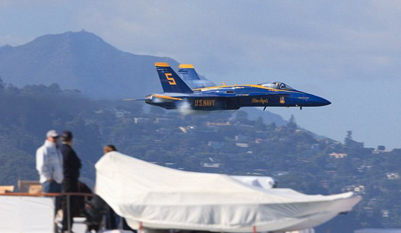 摄影师抓拍美军F-18战机以563公里时速飞过大桥