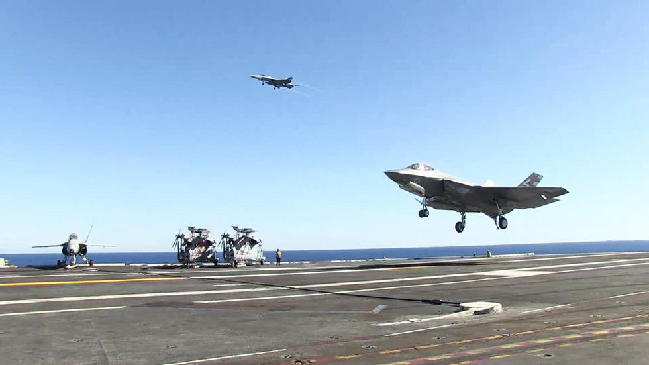 参与本轮上舰试验的两架F-35C编号分别为CF-3和CF-5。按计划试验为期两周,将持续到11月17日。