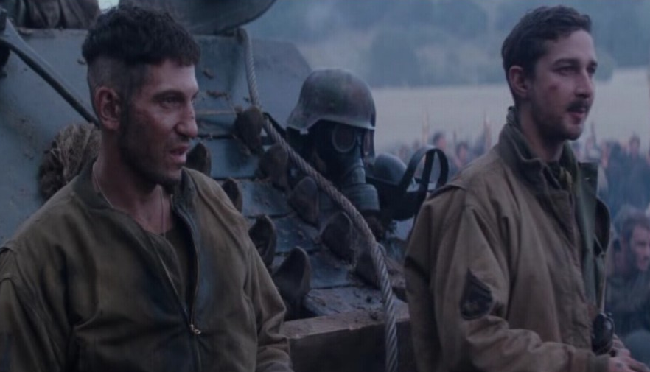 唐想起刚挂掉的战友,怒从心中起,上去殴打战俘,过程闪过一个镜头,狂怒号前装甲上摆着一个德军的M1935头盔和M1930防毒面具。