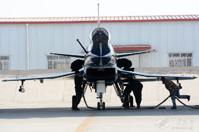 中国空军网(张鹏焱)1月16日,雪后华北大地碧空万里,凛冽的北风吹得人脸上生疼,严寒挡不住空军八一飞行表演队官兵的训练步伐。上午11时,随着指挥员一声令下:“计时起飞。”一架架蓝白相间的歼-10表演机怒吼着跃上蓝天,集合、盘旋、斤斗、开花……二十余个高难度特技表演动作,如行云流水般一气呵成,看得人眼花缭乱、心潮澎湃。