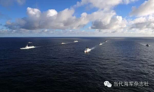 特混编队 7月11日,环太平洋-2014演习,中国海军导弹驱逐舰海口舰、导弹护卫舰岳阳舰、综合补给舰千岛湖舰与美国海军皇家港号巡洋舰、加里号护卫舰,法国海军牧月号护卫舰等舰艇组成的175.1特混大队在航渡中。