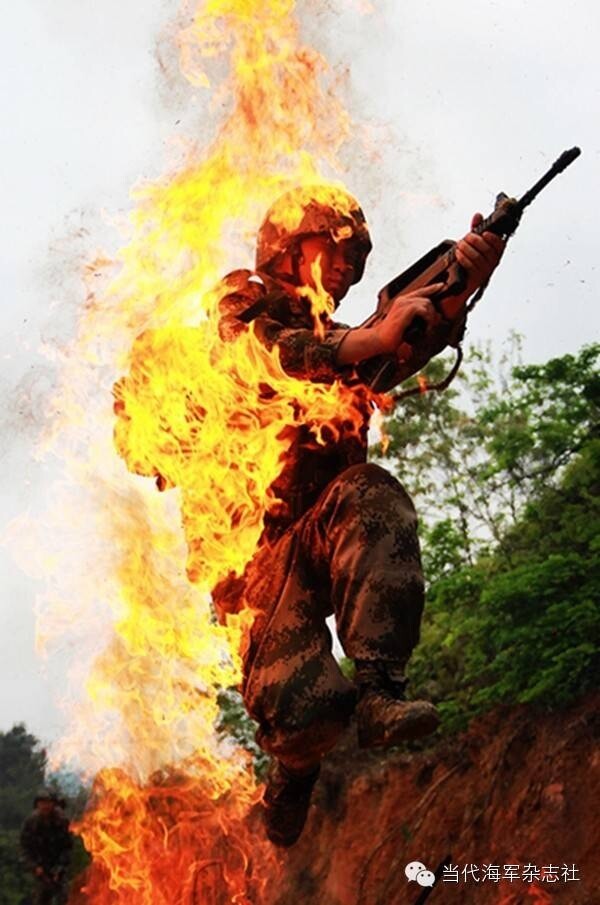 穿越火障 4月23日,南京军区某团五连官兵在战术训练中迅速穿越火障。