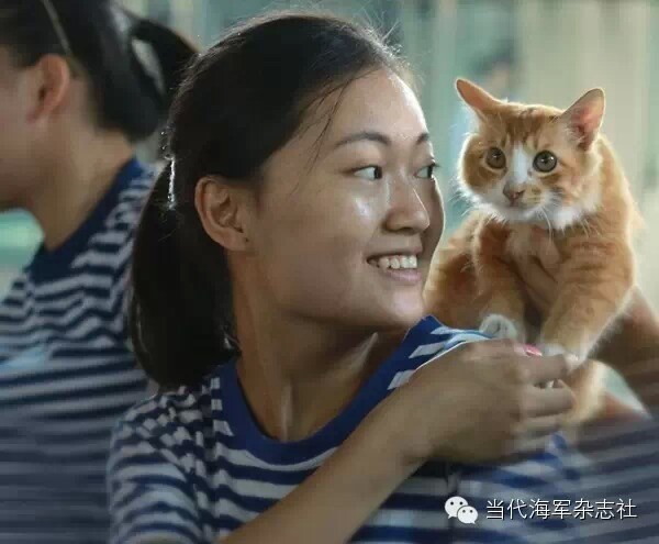 女兵萌宠 营区里的流浪猫和女兵们在一起玩耍。