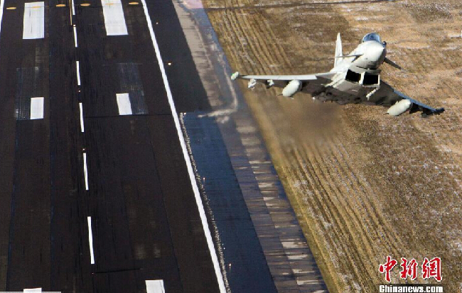 意大利空军“台风”战机升空。