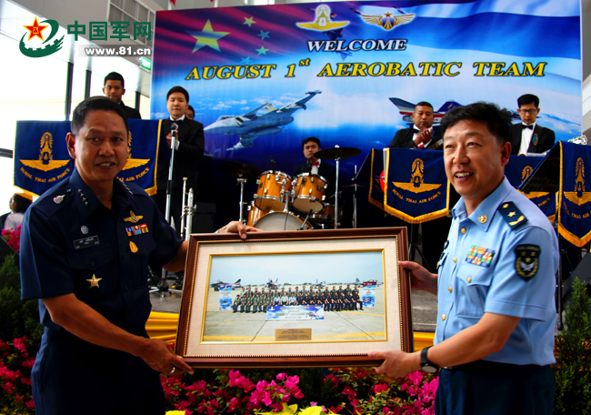 泰国空军向中国空军送上刚刚拍摄的合影照片。黎璇 摄