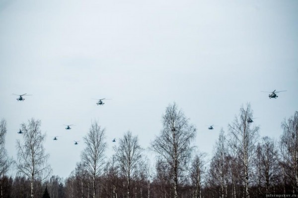 2015年3月21日,俄军精锐空降部队举行了一场实战攻击演习。整个军演一个最大特点就是出动了大量武装直升机、运输直升机。武装直升机在演习担负压制任务,米8武装型与米28攻击型轮番对“敌”阵地火力压制,运输型米8搭载大量步兵机降“敌”后。同时,地面进攻部队发起攻击,陆空联合进攻“顽抗之敌”。