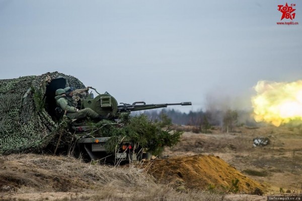 车载ZU-23双联装高炮开火。