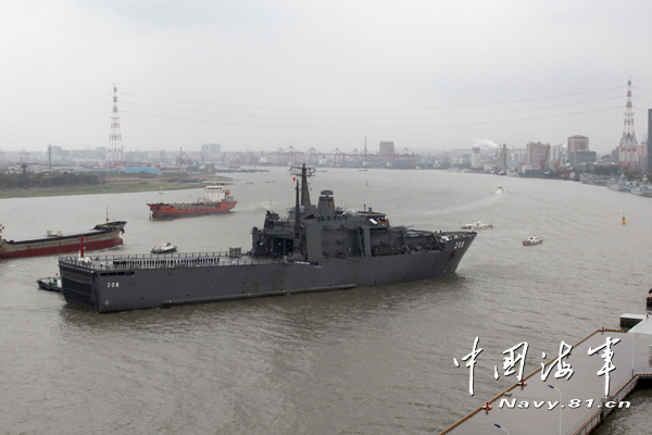 资料图:新加坡海军“坚决”号登陆舰缓缓驶抵海军吴淞某军港。汪贵贤 摄