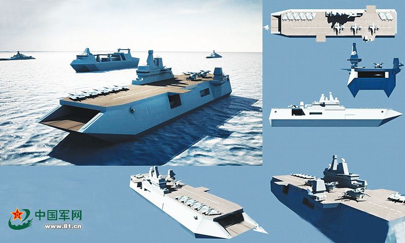 网友设计的中国两栖攻击双层无人机航母。