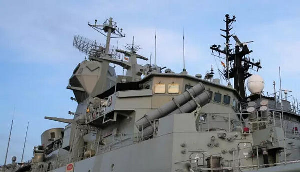 在麻拉军港内,澳大利亚军舰最为醒目,其武器装备也格外引人关注。这次参演的是澳皇家海军150导弹护卫舰“安扎克”号,也是皇家海军最新的八艘主力作战舰艇之一。它为远程多功能护卫舰,担负澳海军防空、反潜、海上监视与侦察和海上封锁等任务。