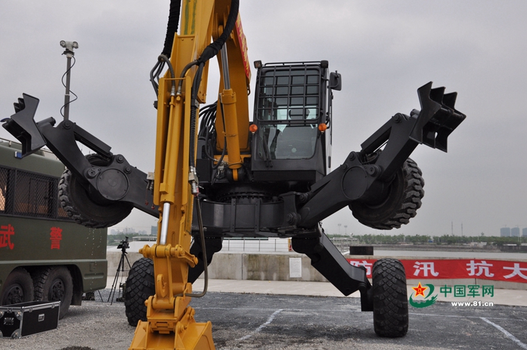 挖掘机不再是传统履带式,而是长出了四条腿,越障爬坡如履平地;排洪水不再靠传统的发电机、皮管子,而是直接运用车载液压动力,架起了铁质的炮管子,不一样的装备让抽水效率达到3000m3/h,相比传统排涝方式效率提升了5倍多。2016年5月10日,在上海市军地防汛演练中,武警水电二总队的一批高精尖抢险装备出现在演习现场,投入实兵演练,惊艳全场,赢得了参演各方的高度赞誉。部分高科技主战装备还是首次列装参演,标志着武警水电部队走上科技化、自动化抢险新道路。