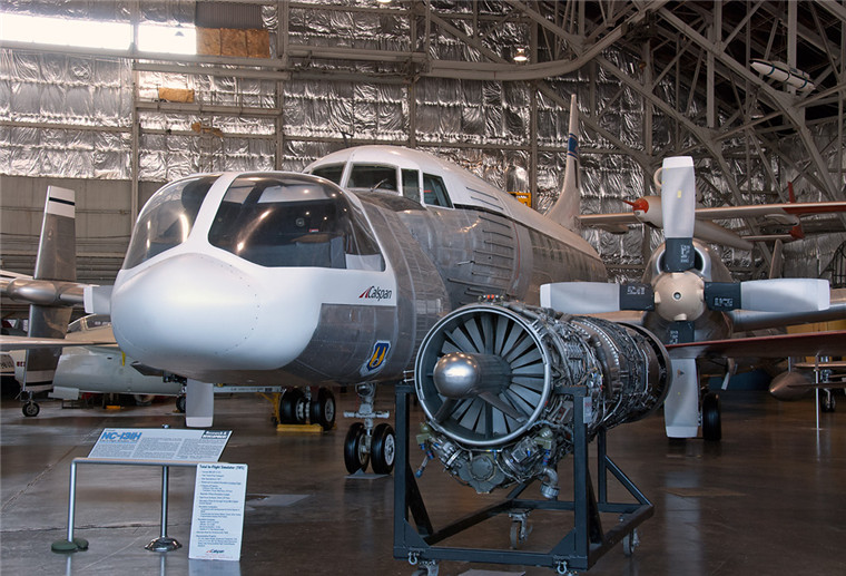 在博物馆里展示的NC-131H 特种飞机,前面是它采用的发动机。