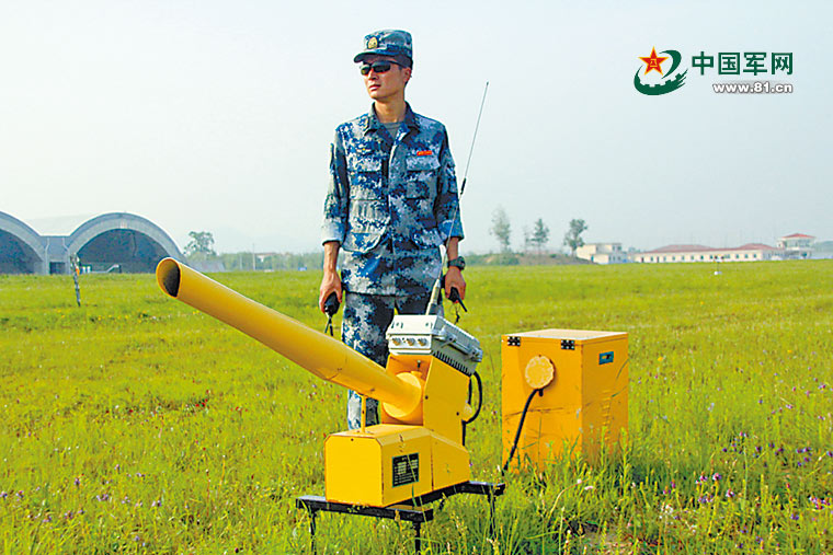 “嘭”的一声巨响,鸟群被惊得四散而逃,这是煤气炮在实施驱鸟作业。战机飞行准备阶段,通过电子遥控向空中发出空洞声响,对鸟类起到吓阻作用。其原理是发出突然而强烈的噪声,刺激鸟类听觉系统,使鸟类感到紧张或恐惧,从而达到驱鸟目的。另外,煤气炮发声间隔不能低于3分钟,否则容易让鸟类很快适应。