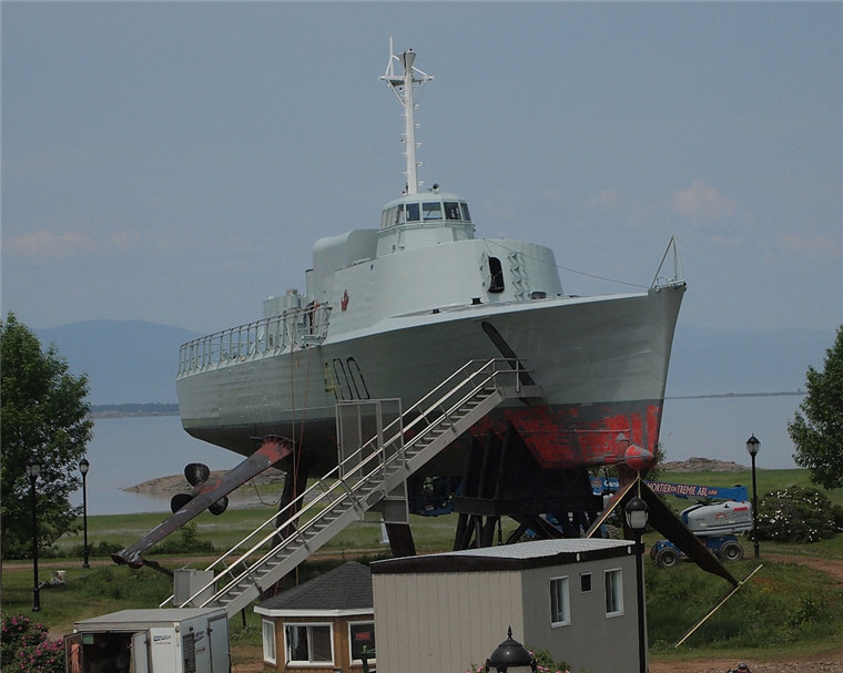 船体离地面很高,需要爬梯子才能够进入它的内部。