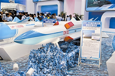 CM-302全程超声速导弹作为明星产品,搭配微波和地波超视距雷达一同亮相。与只能在末段实现超音速机动的导弹相比,CM-302导弹对敌防空系统的压制更强。此外,两款雷达为CM-302导弹充当“火眼金睛”,对海面中大型目标实施精确打击。