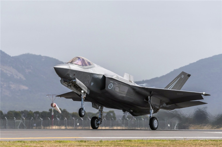 3月3日,在澳大利亚墨尔本,一架F-35战斗机在澳大利亚国际航空航天和国防博览会上起飞。