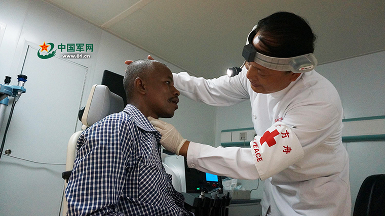 和平方舟医院船耳鼻喉科专家为吉布提民众进行健康检查。薄禄龙 摄