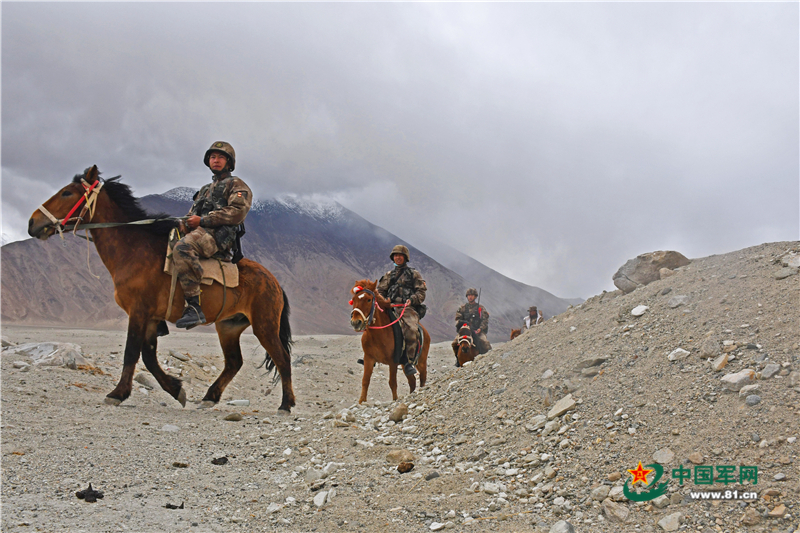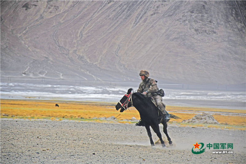 风雪起,马长嘶。为了激发官兵训练热情,提高高原驻训适应性。近日,在海拔4500米的藏北高原驻训点,新疆军区某红军团英雄营正组织刚成立一个月的马术小组进行首次马上训练。