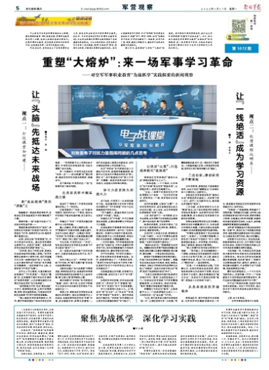 各级指挥员是军事人才方阵的主体力量,军事职业教育必须紧盯这个“决战决胜”的关键,帮助他们在学习中提高思维层次、更新理念方法,并发挥导向和引领作用,带动全体官兵走向深度学习。把学战、研战、谋战、练战变成一种工作的常态和习惯,引导“战争学习”不断走向深入,提升打赢未来战争的“略”与“力”。