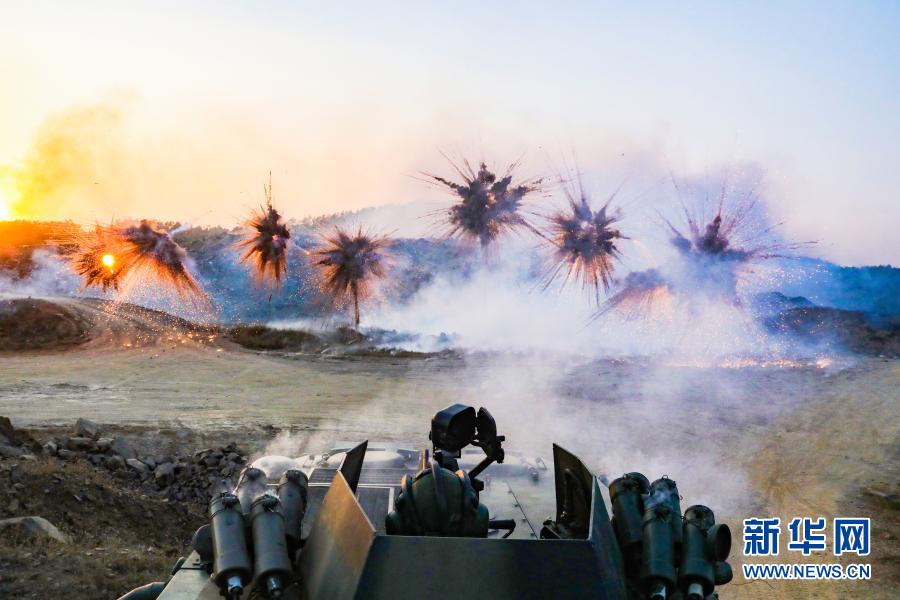 陆军第72集团军某旅组织某型轮式装甲输送车进行车载烟幕实弹射击训练(1月4日摄)。新华社发(张毛 摄)