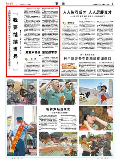 人民军队的历史,就是一部崇尚荣誉、创造荣誉的辉煌史。我们期待更多官兵在军旅荣光的激励下,把个人理想融入强军伟业,在军营大熔炉里锻造过硬本领、实现人生价值,为续写人民军队新的辉煌贡献力量。