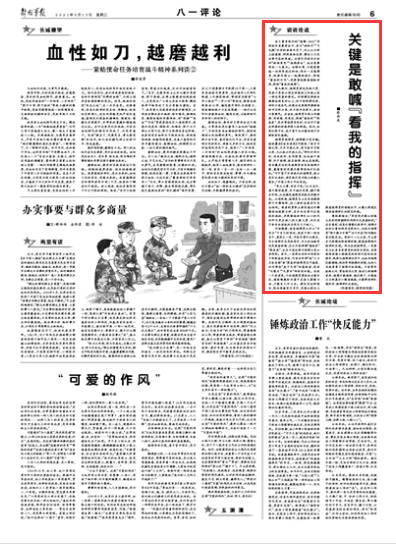 毫无疑问,指挥员首先是战斗员,是战斗员就必须在训练场上和战士有一样且更高的要求。你强调实弹射击都要达到良好以上,你只有取得优秀,讲评才有底气;你提出武装越野都要按时冲过终点线,你只有冲在前头,说话才显硬气。应该说,指挥员与战士同操课、同训练、同竞技,敢喊“看我的”“跟我来”,是非常值得肯定的,而且对于激发部属的训练热情大有裨益。然而,如果仅限于此,或只重于此而置其他于不顾就有失偏颇。