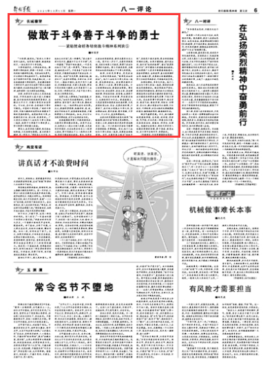事实上,我军讲战斗精神,既包括血性胆魄,又包括理性智慧。真正的战斗精神,是一种定力,“猝然临之而不惊,无故加之而不怒”;是一种静气,“泰山崩于前而色不变,麋鹿兴于左而目不瞬”;是一种睿智,“草摇叶响知鹿过,一叶易色而知天下秋”;是一种勇气,“明知山有虎,偏向虎山行”。只有具备了这些方面的素质,才能很好地服务于政治全局、斗争大局。倘若“匹夫见辱,拔剑而起,挺身而斗”,或者不讲策略、不讲方法、不讲艺术,一路狂冲猛打;或是只凭个人痛快,不讲集体利益、不顾大局成败,那就不是弘扬战斗精神,也不是彰显个人血性,而是一种莽夫行为,只会干扰斗争大局,给工作带来不利。