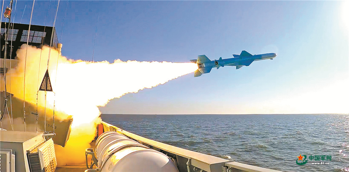 “5、4、3、2、1,发射!”一声令下,导弹拖着尾焰呼啸而出,直扑“敌”舰……