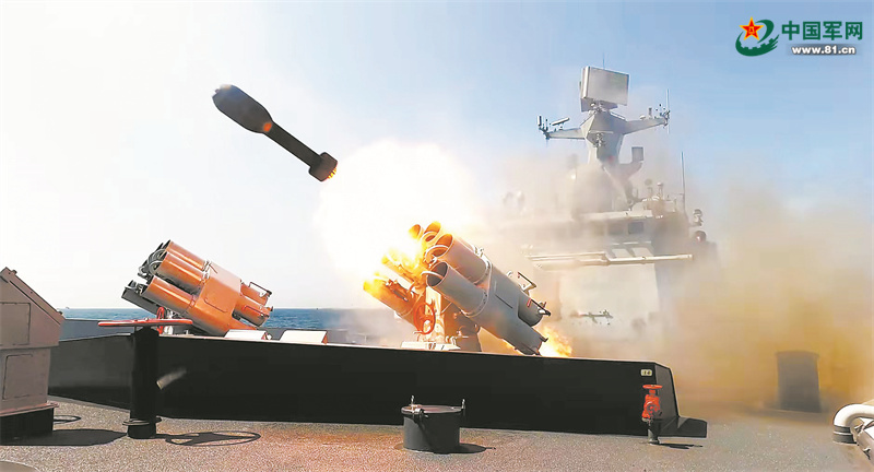 “开火!”随着一声令下,数十发炮弹在火光和硝烟中直扑目标。顷刻间,隆隆炮声响彻海天……