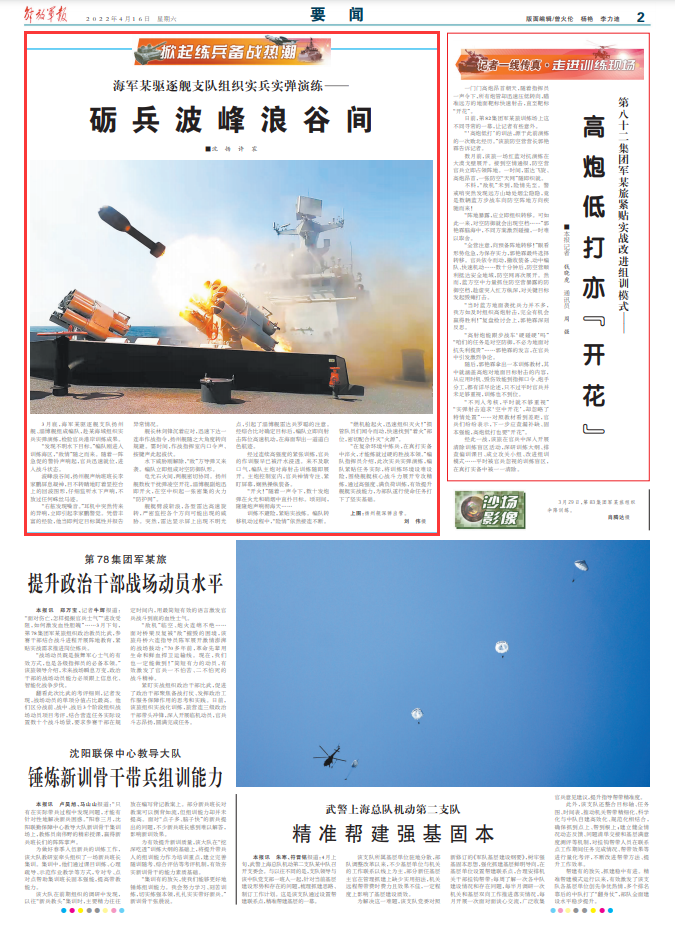 3月底,海军某驱逐舰支队扬州舰、淄博舰组成编队,赴某海域组织实兵实弹演练,检验官兵港岸训练成果。