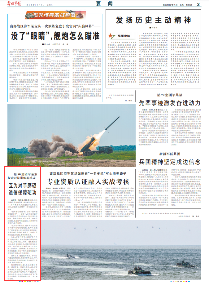 利刃要在石上磨,胜战须靠对手练。通过变单一组训为双向合训,该旅兵种分队作战能力不断提升。近日,该旅参加上级组织的跨区实兵对抗演练,电抗分队在一次战斗中成功干扰“敌”多个信号频段,有效削弱和打击了“敌”通信力量。