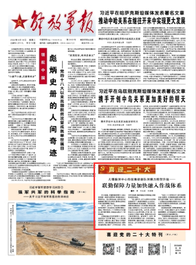“党的二十大即将召开,我们更要铆足劲、练硬功,为持续推动部队保障力转型升级作贡献!”该中心领导表示,他们一边围绕实战课题加强理论攻关,一边利用大项演训任务探索实践,全面锤炼部队实战保障能力。