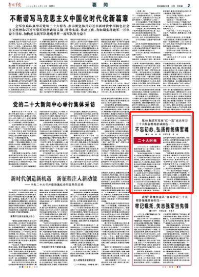 中士崔文科去年参加“国际军事比赛-2021”“晴空”项目时,不畏强手、奋勇拼搏,被评为多能赛最佳驾驶员。结合自身经历,他激动地说:“报告指出,坚持党对人民军队的绝对领导。作为红军传人,我们要传承发扬连队优良传统,听党话、跟党走,苦练战斗本领。”