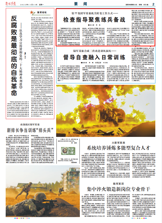 “谈问题直言不讳、一针见血,解难题现场办公、定人定责,提要求对症下药、清晰明了……”日前,第77集团军某旅联合检查小组下沉各分队开展检查指导,不同科室同步展开工作,聚焦解决基层抓建难题,最大限度减少营连迎检负担。官兵纷纷感慨:这样的检查指导,基层欢迎!